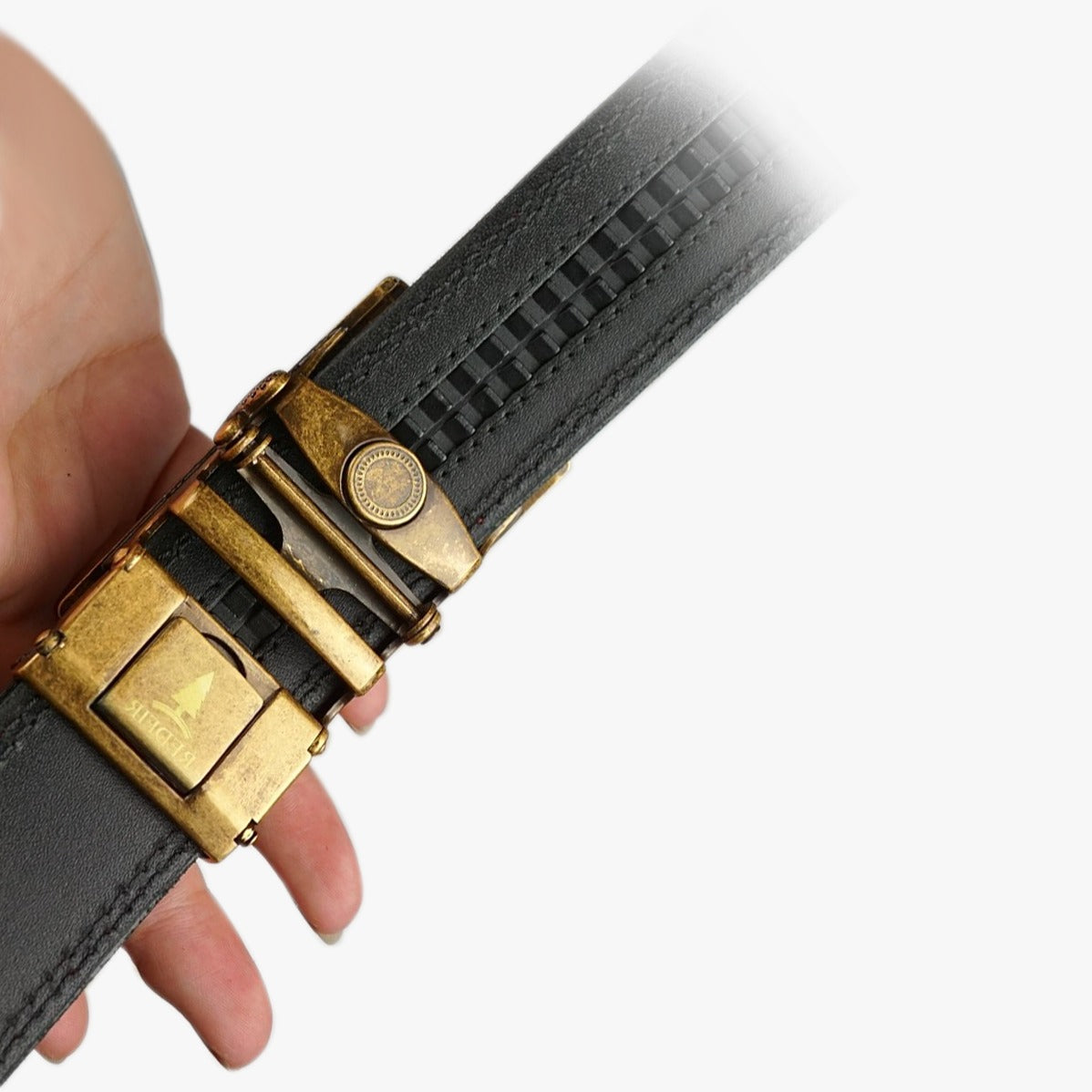 Our belt buckles are made of zinc alloy in various colors and finishes. The main element is zinc, and aluminum and other elements are contained in small amounts. The buckles also contain a small amount of nickel and may therefore not be suitable for people with nickel allergies or sensitivities. You will receive the belt from us wrapped in a bag made of sanded canvas, which is stored in a cardboard box. For an additional fee, we will send you the belt wrapped in a wooden gift box.
