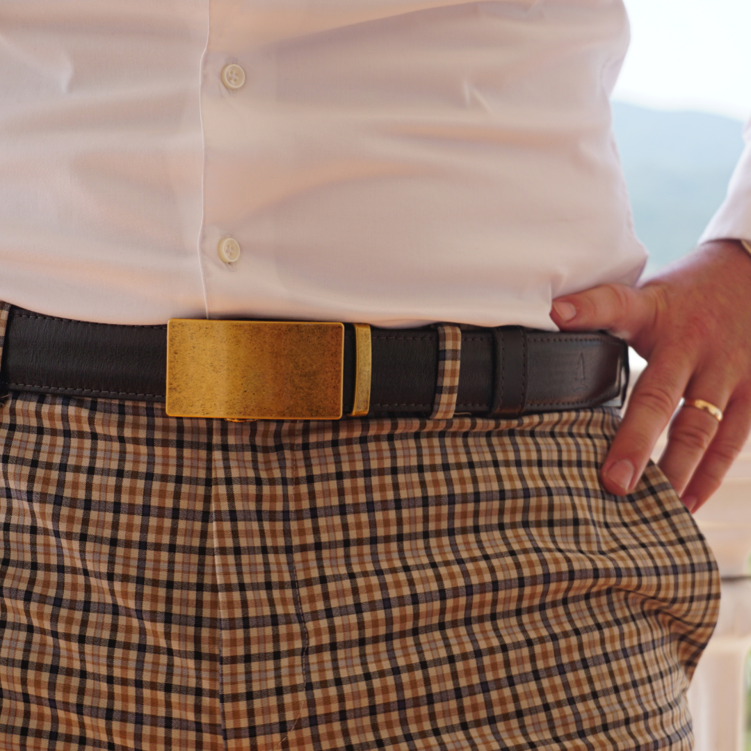 You can buy our men's leather belts in a standard design, but you can also have the belt made according to your ideas. You can have a belt made in a longer version (we can also make belts of extra-standard sizes practically up to a length of over 180 cm) or you can order the embossing of a monogram, an inscription, or a company symbol or logo.
